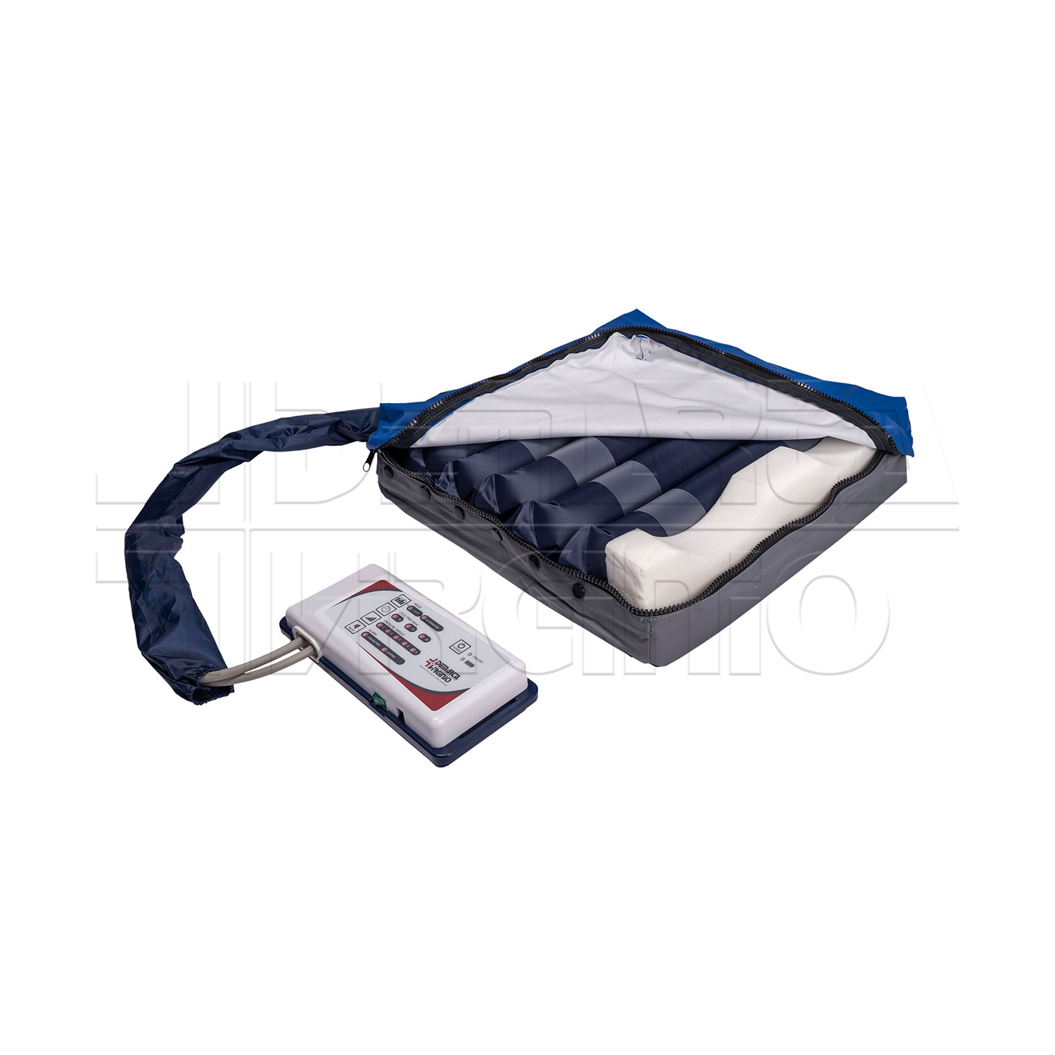 NEODYNAMIC A DUE VALVOLE è un cuscino a bolle d’aria con struttura a micro-interscambio con settori differenziati. La superficie d’appoggio è anatomica. E’ realizzato in Neoprene impermeabile all’aria per assicurare il mantenimento di una pressione costante all’interno. Le due valvole consentono ai pazienti di regolare pressioni diverse in base al loro bisogno.