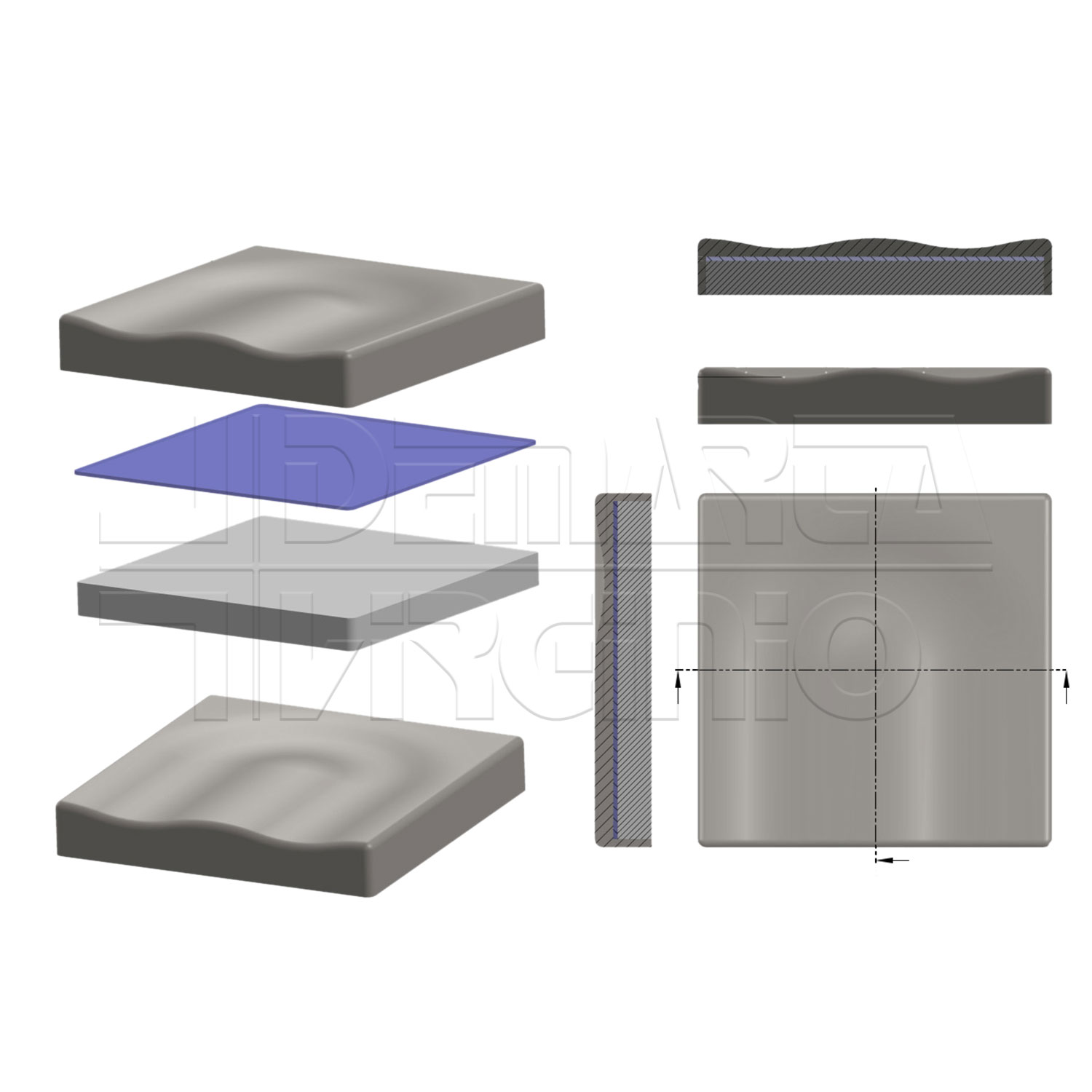 Il cuscino GHOST è composto da una base in espanso di densità 40 Kg/m3, una gelatina automodellante viscoelastica nel mezzo e una seduta anatomica in espanso viscoelastico con densità di 86 Kg/m3.