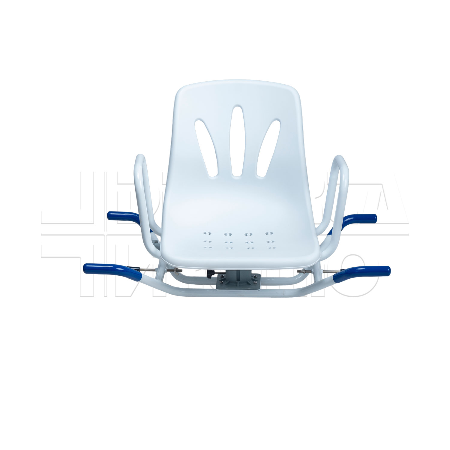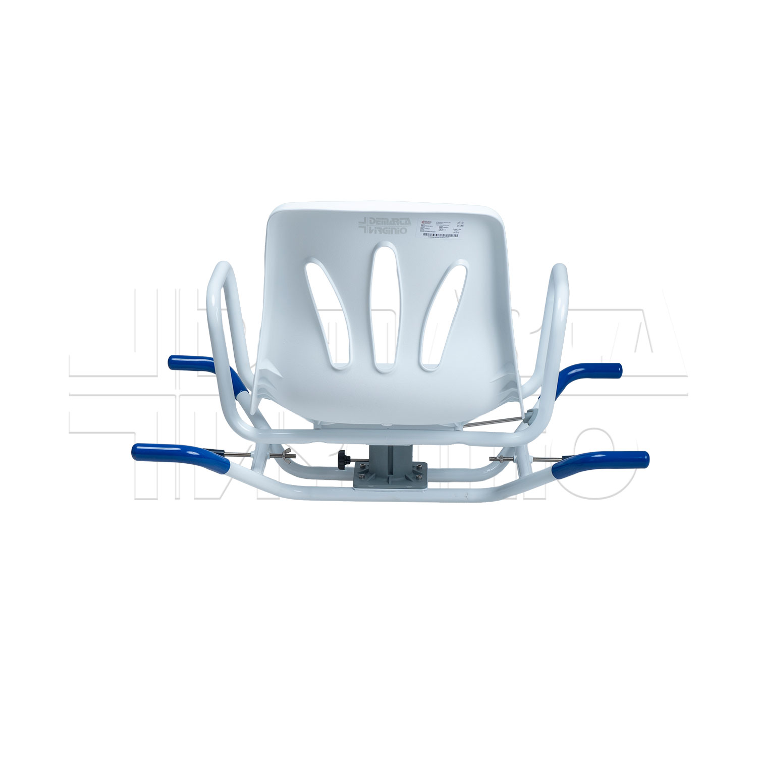 La seduta è in Polipropilene ed i fori presenti su di essa consentono il corretto deflusso dell’acqua. Il sedile è munito di braccioli antigraffio per garantire il massimo comfort e sicurezza.
