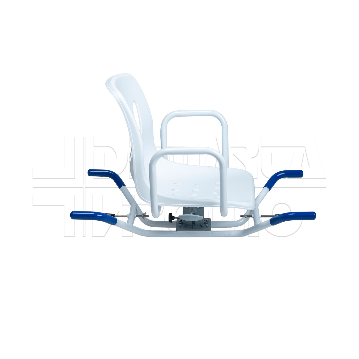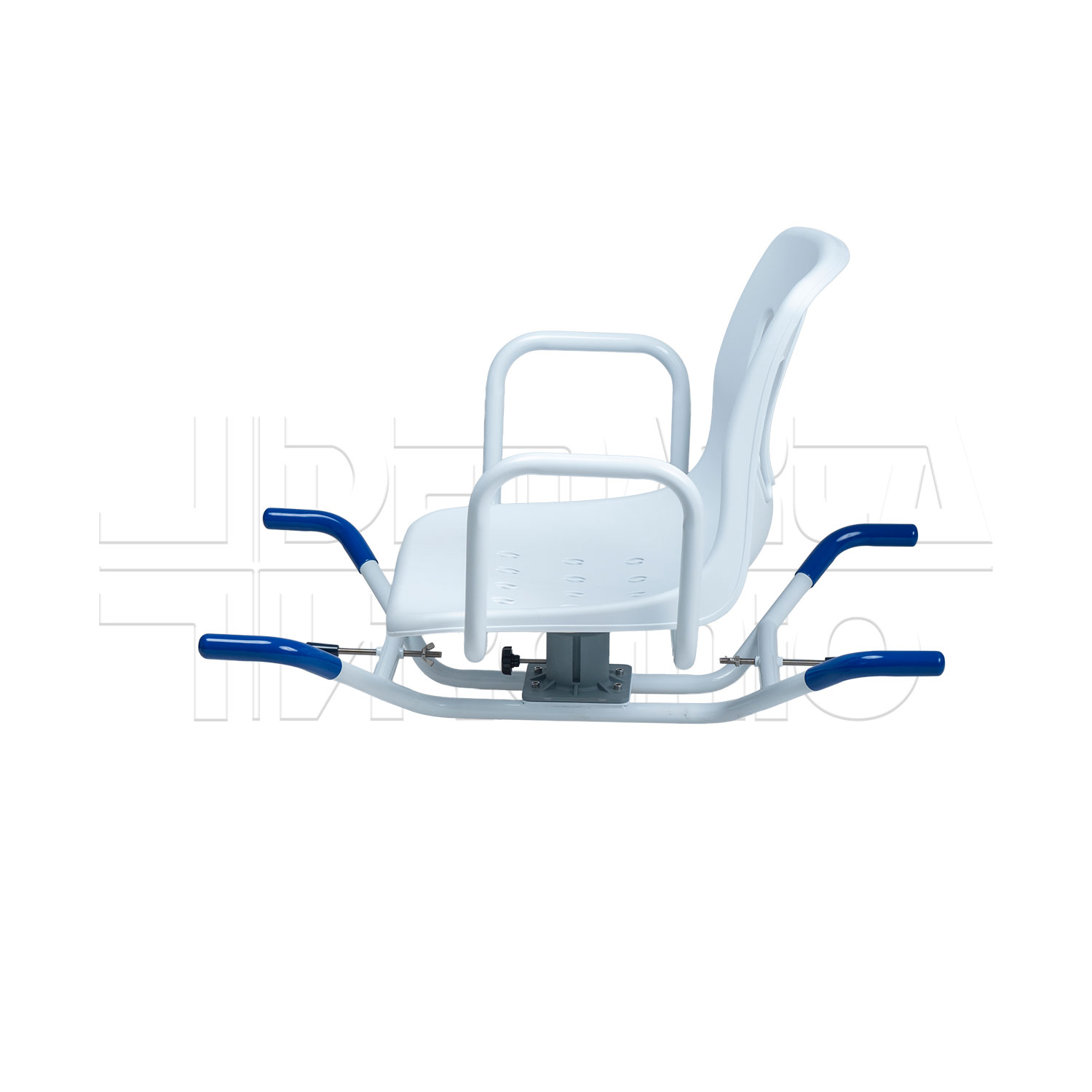 Il SEDILE GIREVOLE DA VASCA ha una struttura in acciaio Inox con quattro punti di ancoraggio alle pareti della vasca da bagno.