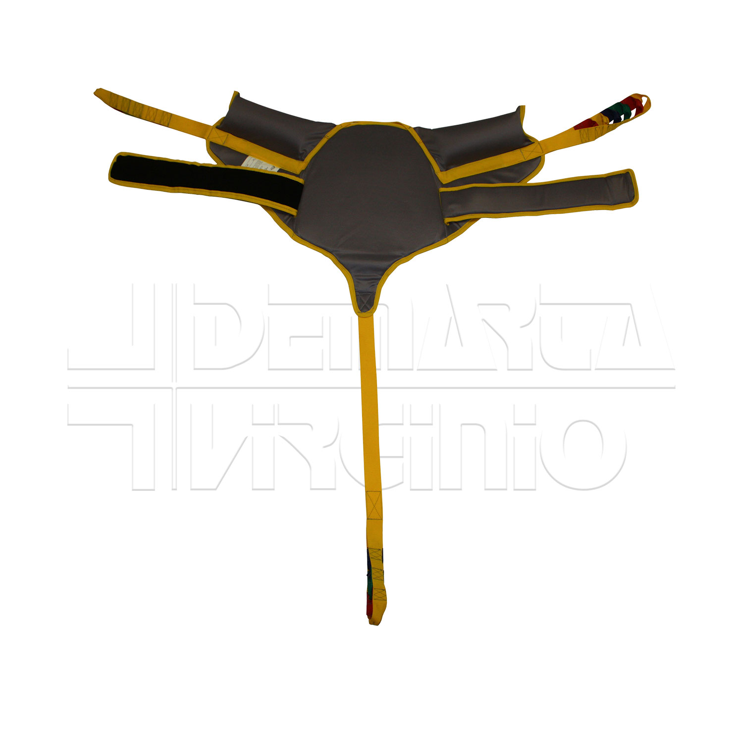 L’ IMBRACATURA a 3 Punti è realizzata con un tessuto in Poliestere e cinghia in Polipropilene, ha 6 lunghezze di attacco al bilancino del verticalizzatore con una fascia imbottita per la schiena e per la zona ascellare. L’imbracatura presenta una cinghia lombare con chiusura in velcro. Per garantire la massima sicurezza, le imbracature dovrebbero essere sostituite ogni 3 anni.