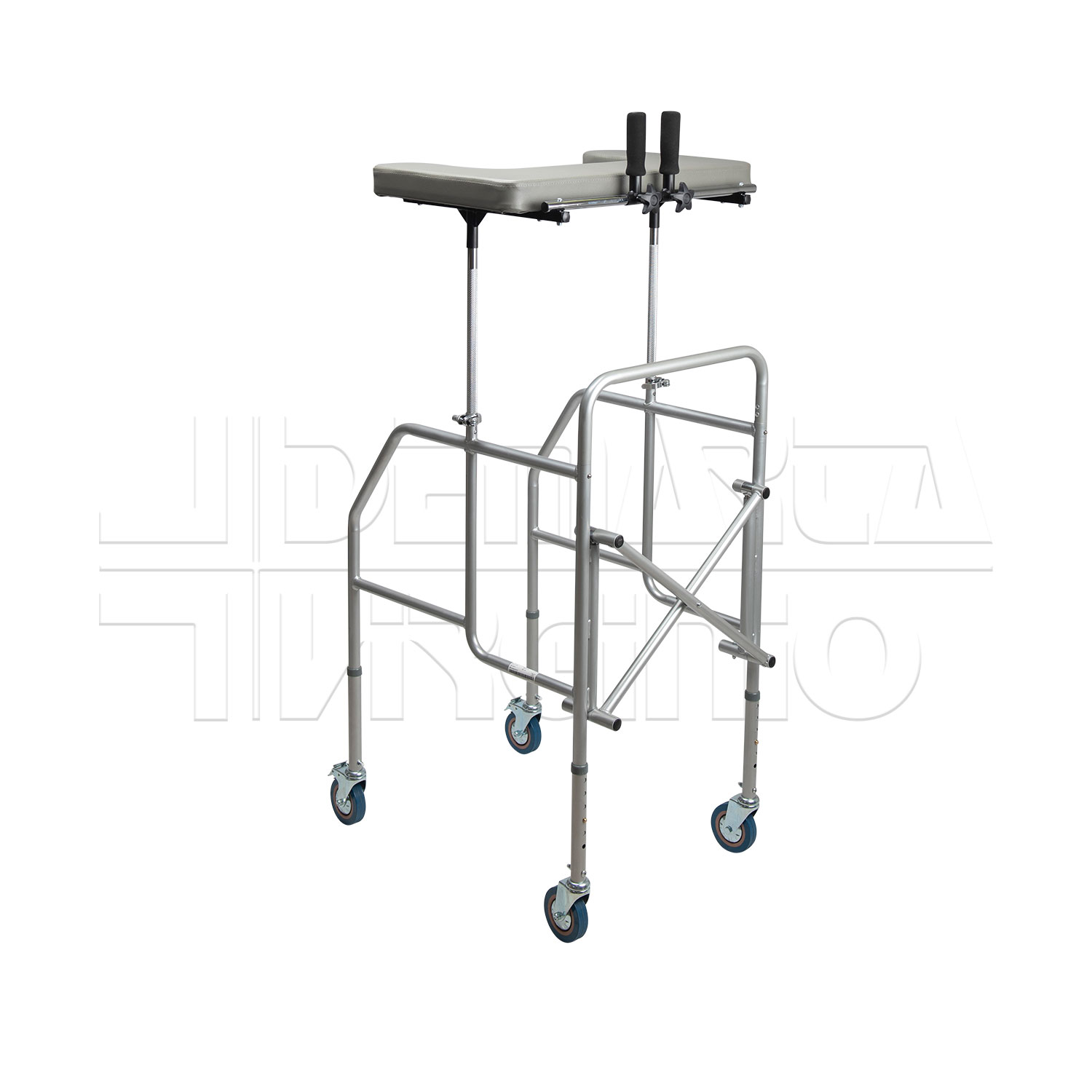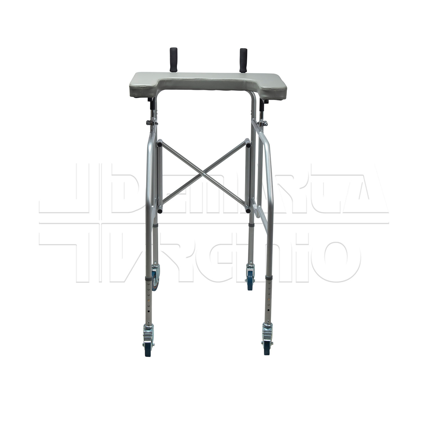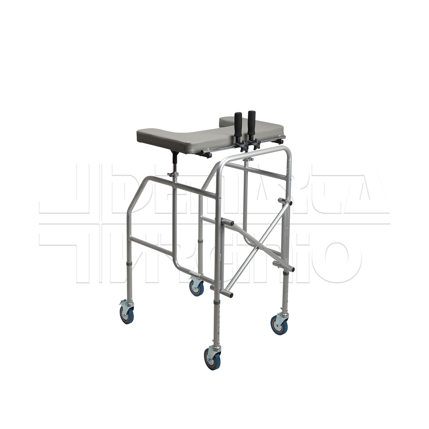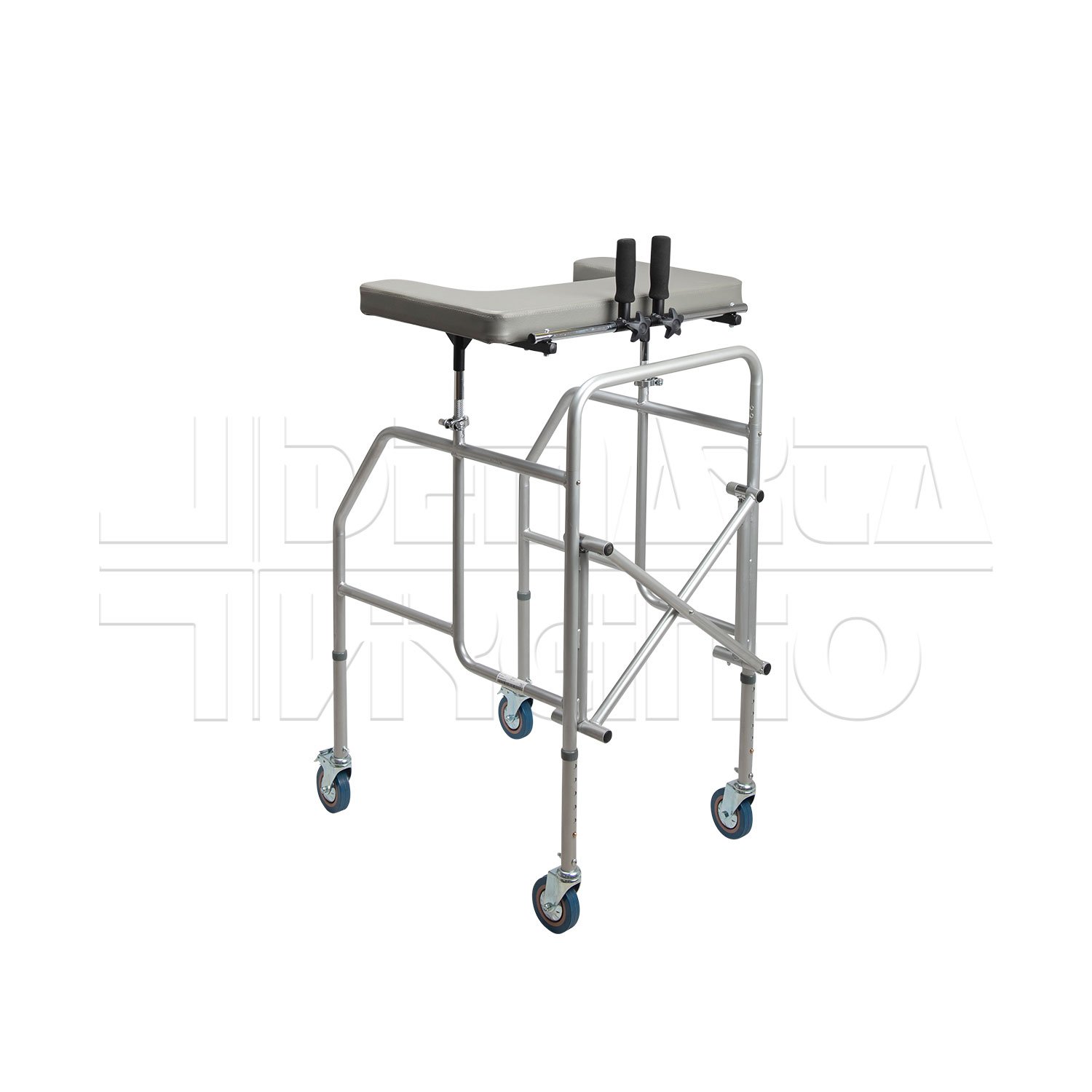 Il Deambulatore Antibrachiale ha una struttura in acciaio pieghevole e regolabile in altezza con tavolino, due supporti regolabili in altezza e quattro ruote piroettanti da 10 cm, le cui due posteriori avente freno d’arresto. Le due manopole sono regolabili in larghezza e in inclinazione. Il deambulatore ha una regolazione in altezza in 6 punti.