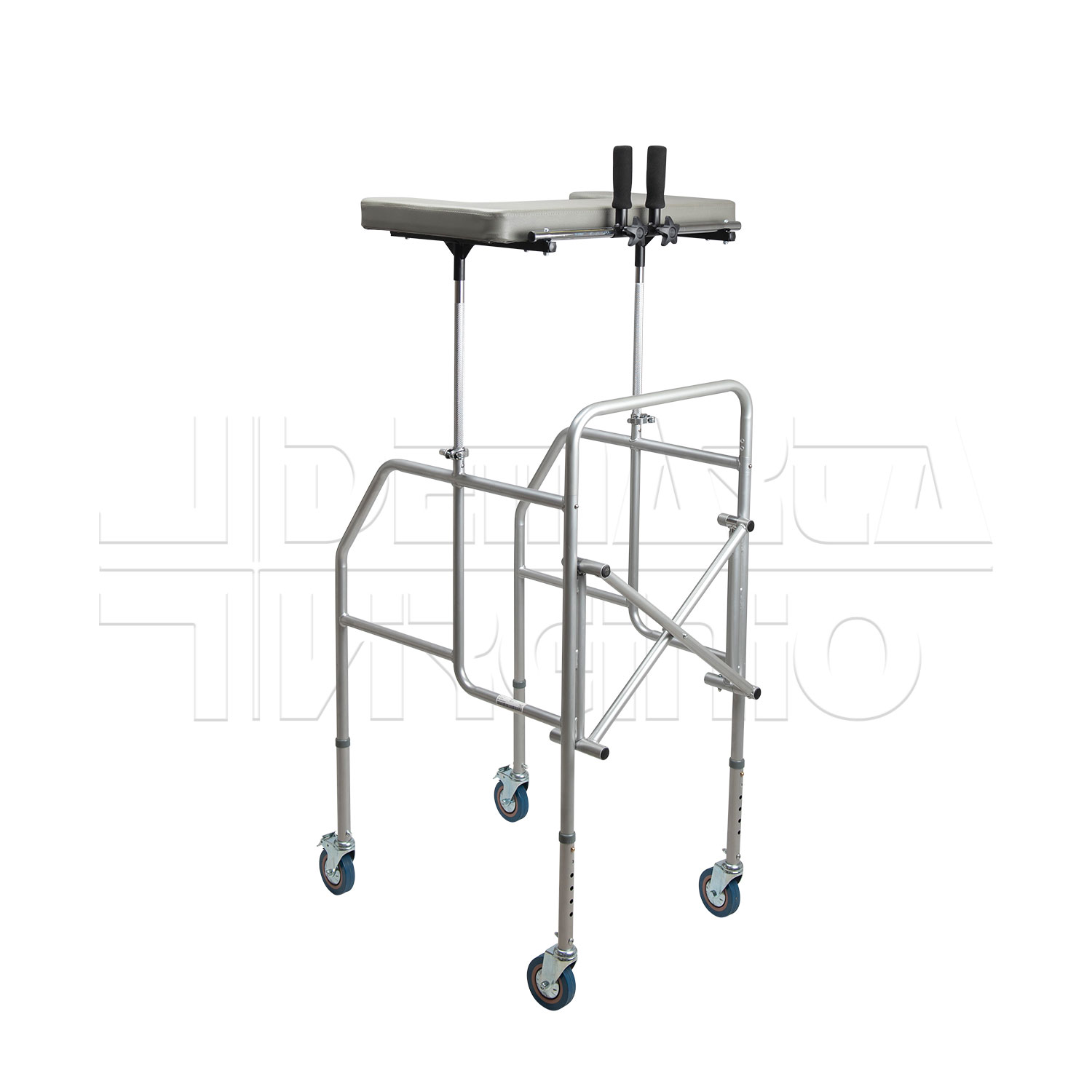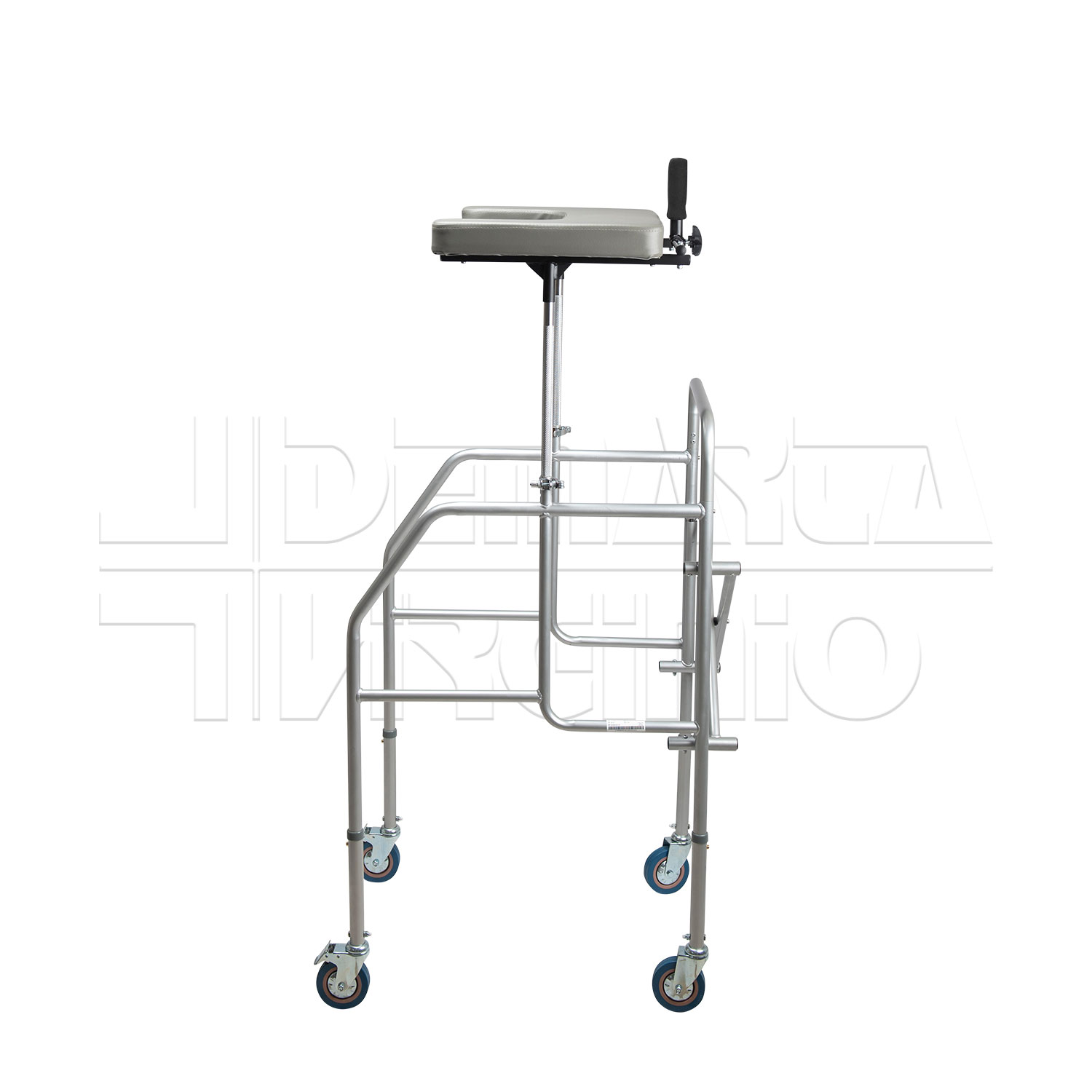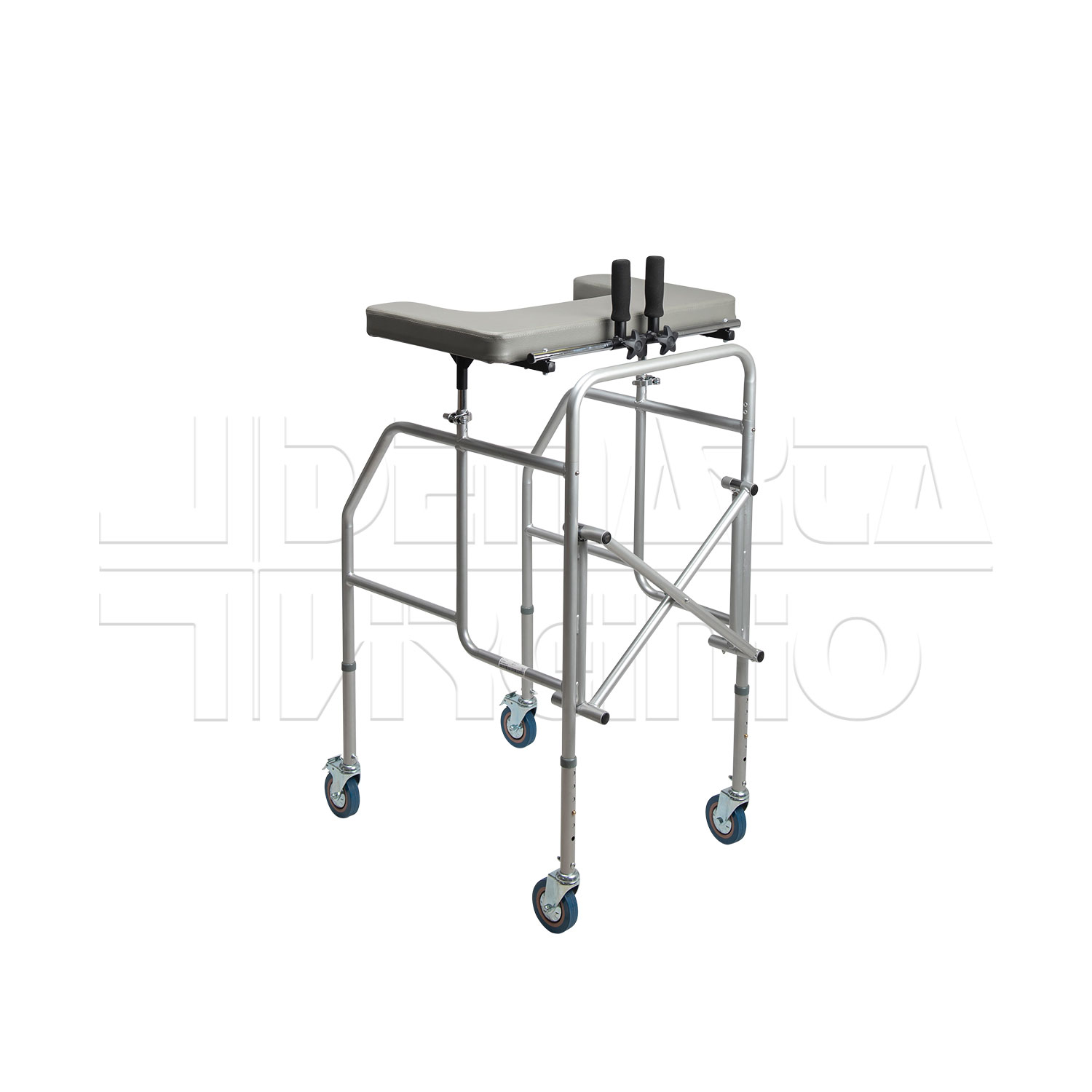 Il Deambulatore Antibrachiale ha una struttura in acciaio pieghevole e regolabile in altezza con tavolino, due supporti regolabili in altezza e quattro ruote piroettanti da 10 cm, le cui due posteriori avente freno d’arresto. Le due manopole sono regolabili in larghezza e in inclinazione. Il deambulatore ha una regolazione in altezza in 6 punti.
