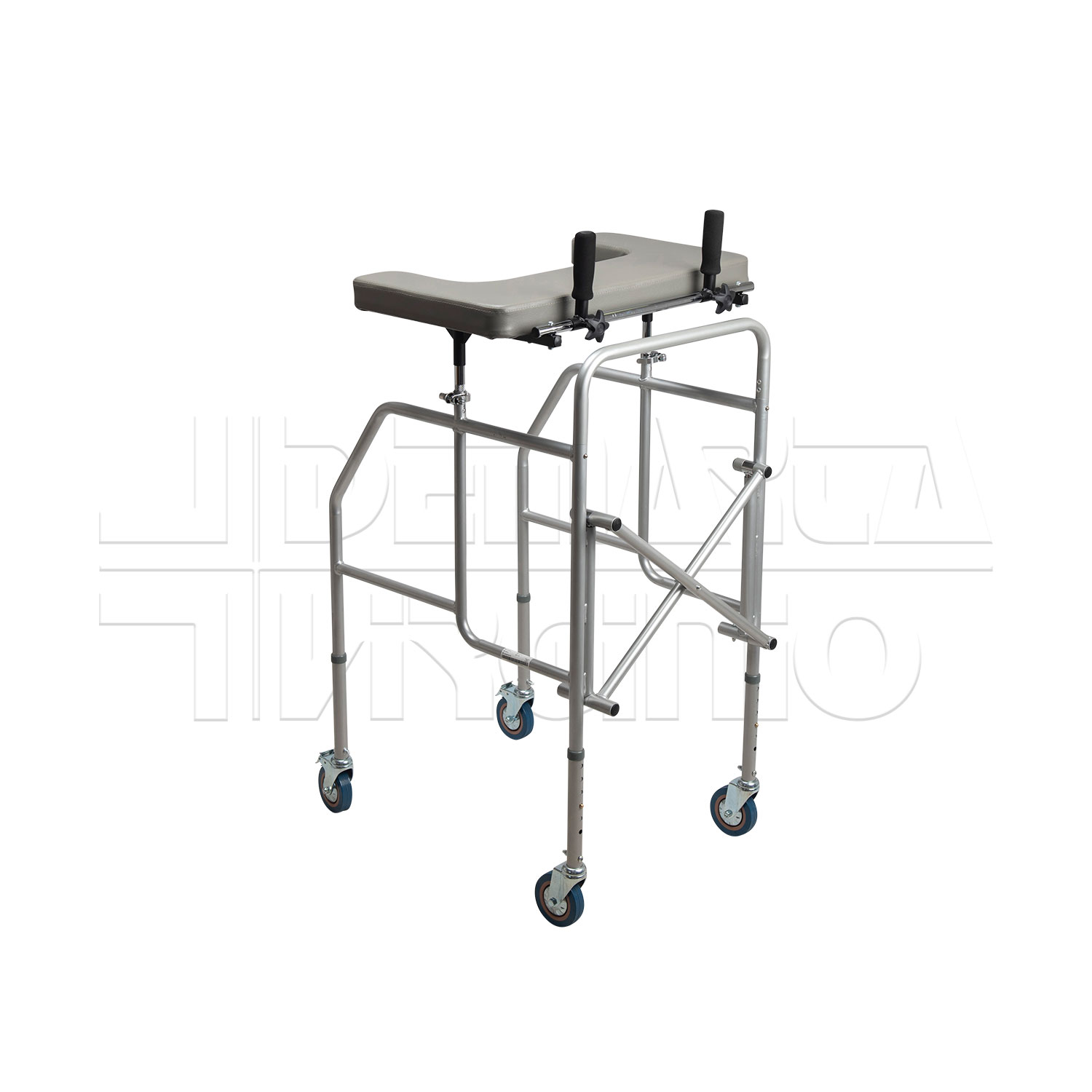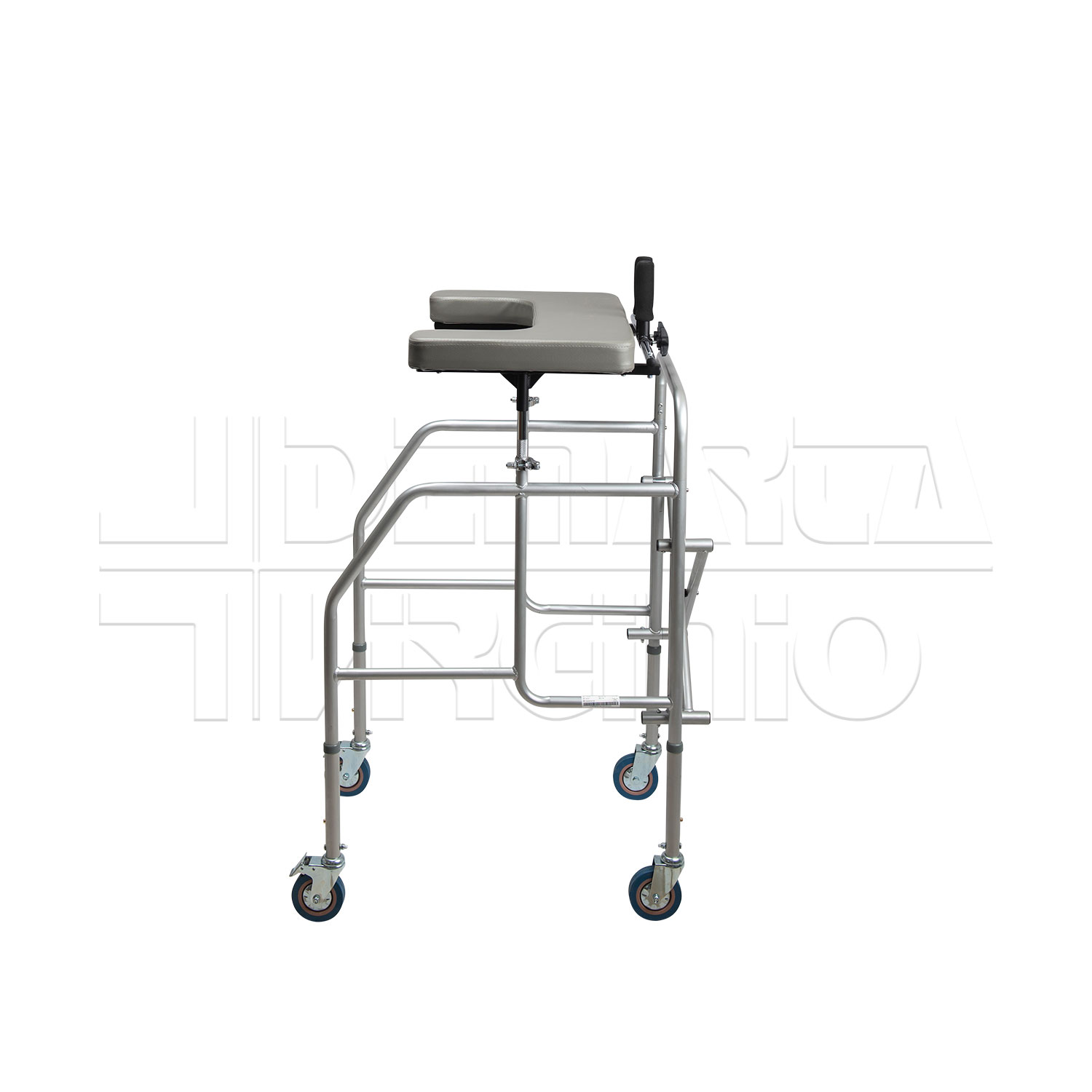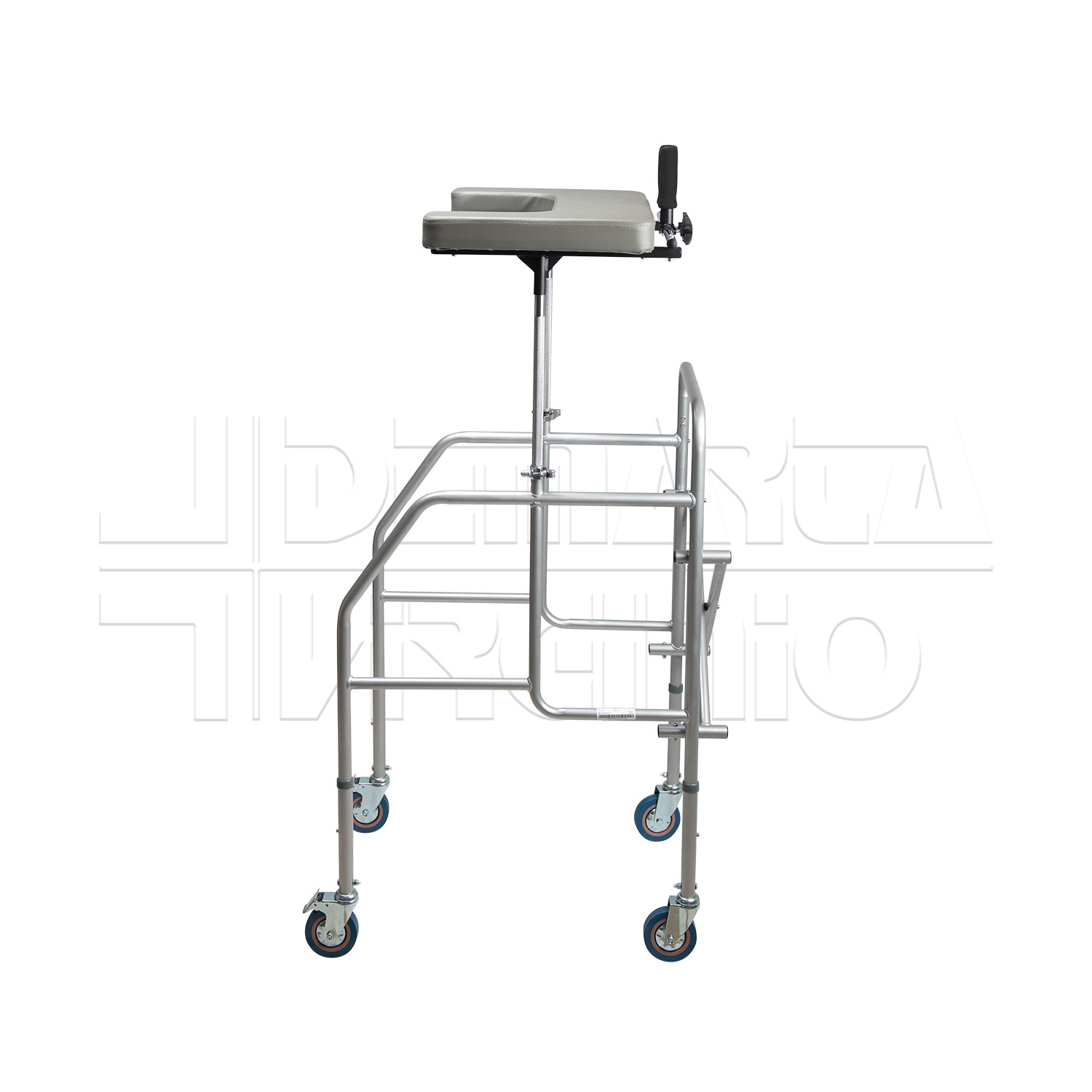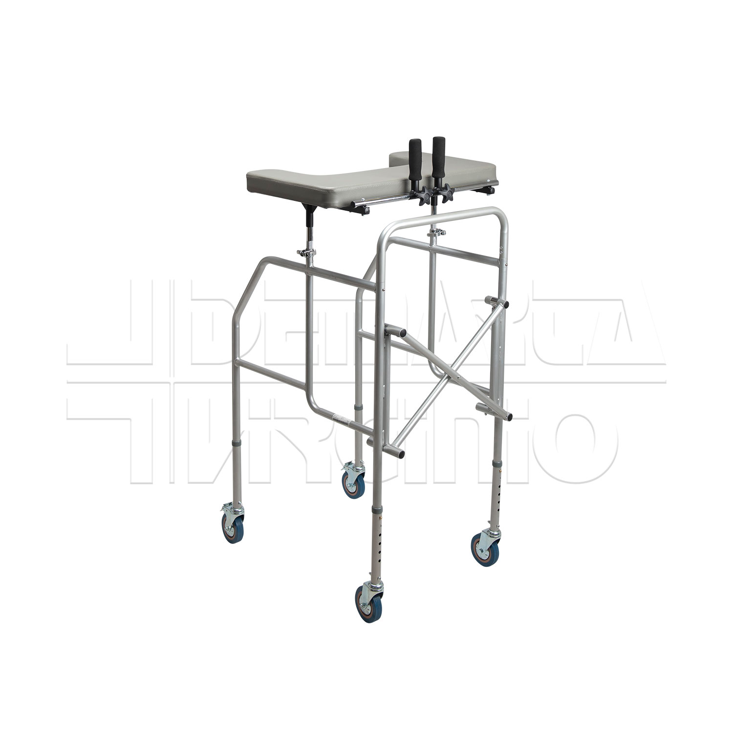 Il Deambulatore Antibrachiale ha una struttura in acciaio pieghevole e regolabile in altezza con tavolino, due supporti regolabili in altezza e quattro ruote piroettanti da 10 cm, le cui due posteriori avente freno d’arresto. Le due manopole sono regolabili in larghezza e in inclinazione. Il deambulatore ha una regolazione in altezza in 6 punti.